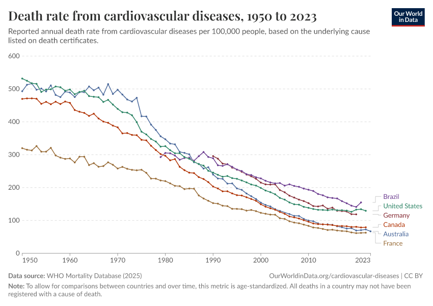Saloni Dattani (2025) - “Death rates from cardiovascular disease have fallen dramatically — what were the breakthroughs behind this?” Published online at OurWorldinData.org. Retrieved from: 'https://tag-updates.owid.pages.dev:8789/20260119-084543/cardiovascular-deaths-decline.html' [Online Resource] (archived on January 19, 2026).BibTeX citation
