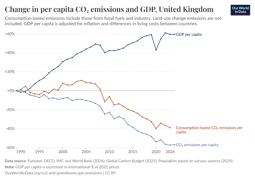 Hannah Ritchie (2021) - “Many countries have decoupled economic growth from CO₂ emissions, even if we take offshored production into account” Published online at OurWorldinData.org. Retrieved from: 'https://tag-updates.owid.pages.dev:8789/20260209-101631/co2-gdp-decoupling.html' [Online Resource] (archived on February 9, 2026).BibTeX citation