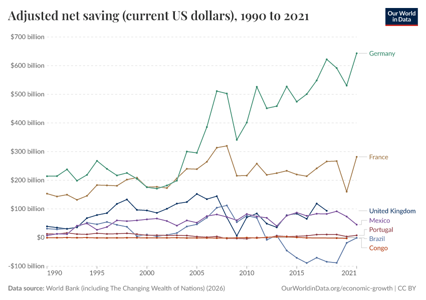 World Bank (including The Changing Wealth of Nations) (2026) – processed by Our World in Data. “Adjusted net saving (current US dollars)” [dataset]. World Bank (including The Changing Wealth of Nations), “World Development Indicators 125” [original data]. Retrieved February 27, 2026 from https://tag-updates.owid.pages.dev:8789/20260202-181317/grapher/adjusted-net-saving-current-us-dollars.html (archived on February 2, 2026).