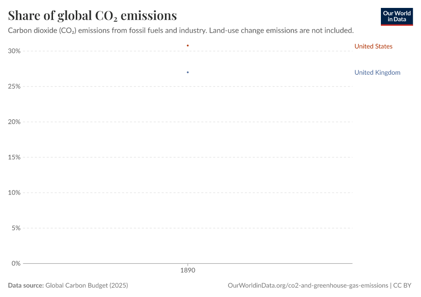 • This data is based on territorial emissions, meaning the emissions produced within a country's borders, but not those from imported goods. For example, emissions from imported steel are counted in the country where the steel is produced. To learn more and look at emissions adjusted for trade, read our article: How do CO₂ emissions compare when we adjust for trade?