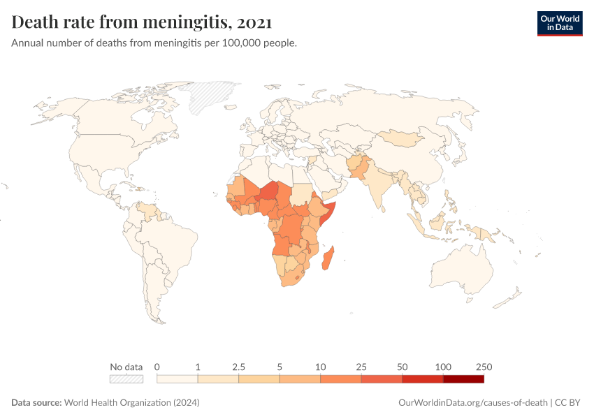 “Data Page: Death rate from meningitis”, part of the following publication: Esteban Ortiz-Ospina and Max Roser (2016) - “Global Health”. Data adapted from World Health Organization. Retrieved from https://tag-updates.owid.pages.dev:8789/20250909-093708/grapher/death-rate-from-meningitis-who.html [online resource] (archived on September 9, 2025).How to cite this data