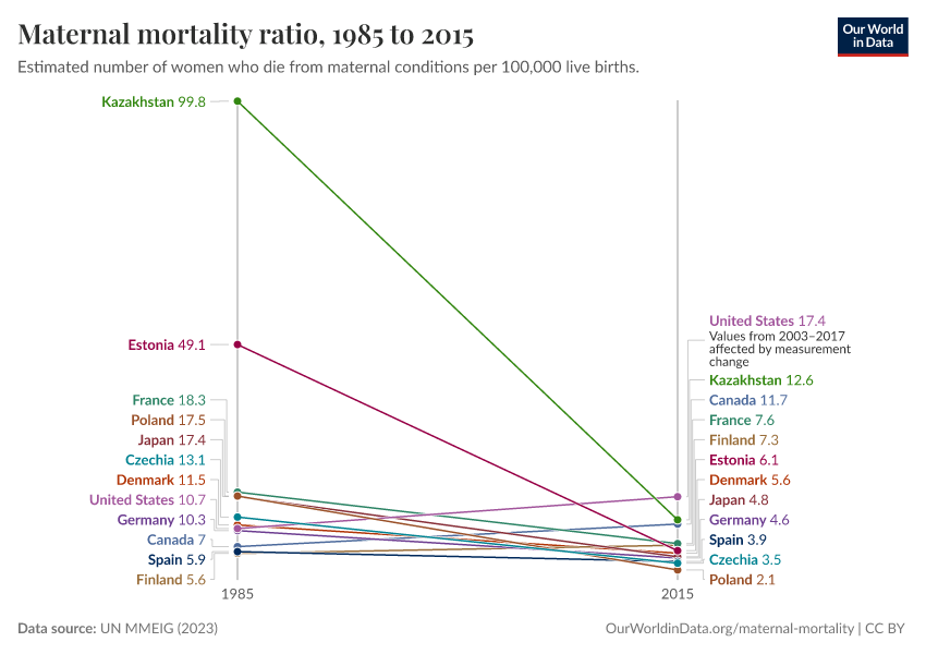 “Data Page: Maternal mortality ratio”, part of the following publication: Max Roser and Hannah Ritchie (2013) - “Maternal Mortality”. Data adapted from UN MMEIG (WHO, UNICEF, UNFPA, World Bank Group and UNDESA/ Population Division). Retrieved from https://tag-updates.owid.pages.dev:8789/20260119-065148/grapher/maternal-mortality-slope-chart.html [online resource] (archived on January 19, 2026).