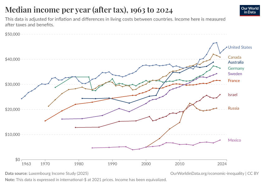 “Data Page: Median income per year (after tax)”, part of the following publication: Joe Hasell, Bertha Rohenkohl, Pablo Arriagada, Esteban Ortiz-Ospina, and Max Roser (2022) - “Poverty”. Data adapted from Luxembourg Income Study. Retrieved from https://tag-updates.owid.pages.dev:8789/20251224-105916/grapher/median-income-after-tax-lis.html [online resource] (archived on December 24, 2025).How to cite this data