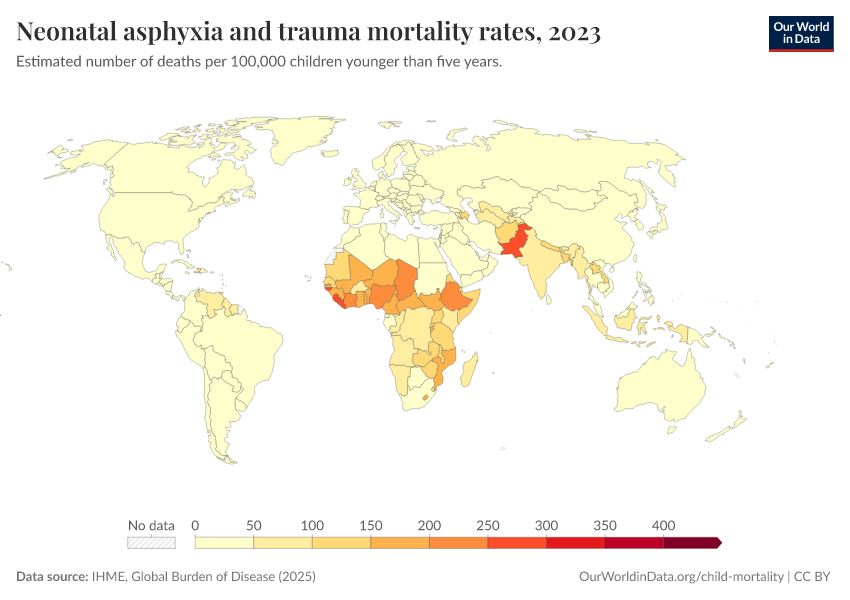 IHME, Global Burden of Disease (2025) – with major processing by Our World in Data. “Neonatal asphyxia and trauma mortality rates” [dataset]. IHME, Global Burden of Disease, “Global Burden of Disease - Deaths” [original data]. Retrieved February 27, 2026 from https://tag-updates.owid.pages.dev:8789/20260211-174736/grapher/mortality-neonatal-asphyxia-and-trauma.html (archived on February 11, 2026).