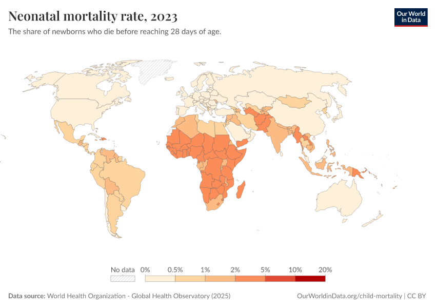 World Health Organization - Global Health Observatory (2025) – processed by Our World in Data. “Neonatal mortality rate” [dataset]. World Health Organization, “Global Health Observatory” [original data]. Retrieved February 27, 2026 from https://tag-updates.owid.pages.dev:8789/20260119-070102/grapher/neonatal-mortality-rate-gho.html (archived on January 19, 2026).