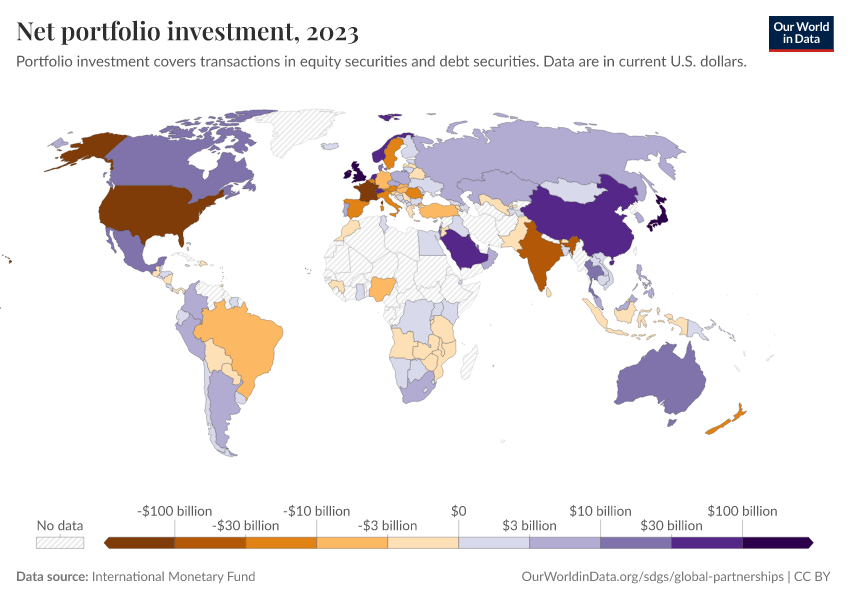 “Data Page: Net portfolio investment”, part of the following publication: Max Roser, Bertha Rohenkohl, Pablo Arriagada, Joe Hasell, Hannah Ritchie, and Esteban Ortiz-Ospina (2023) - “Economic Growth”. Data adapted from International Monetary Fund. Retrieved from https://tag-updates.owid.pages.dev:8789/20260130-180113/grapher/net-portfolio-investment.html [online resource] (archived on January 30, 2026).How to cite this data