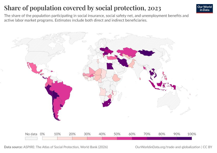 “Data Page: Share of population covered by social protection”. Our World in Data (2026). Data adapted from ASPIRE: The Atlas of Social Protection, World Bank. Retrieved from https://tag-updates.owid.pages.dev:8789/20260202-181317/grapher/share-of-population-covered-by-social-protection.html [online resource] (archived on February 2, 2026).How to cite this data