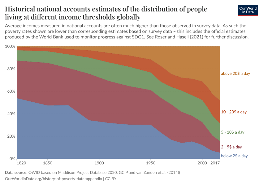 Joe Hasell (2019) - “Data appendix – The fight against global poverty: 200 years of progress and still a very long way to go” Published online at OurWorldinData.org. Retrieved from: 'https://tag-updates.owid.pages.dev:8789/20260128-140124/history-of-poverty-data-appendix.html' [Online Resource] (archived on January 28, 2026).BibTeX citation