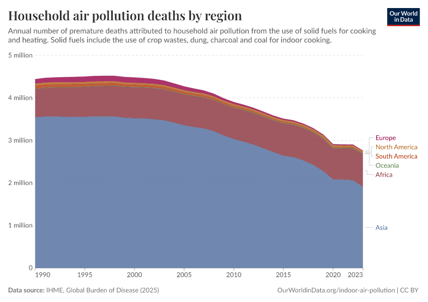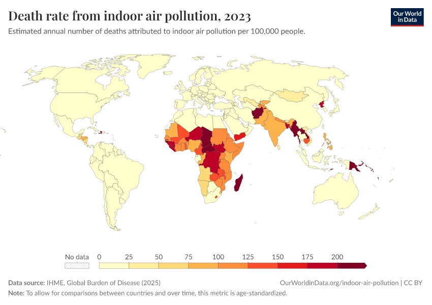 Hannah Ritchie and Max Roser (2022) - “Indoor Air Pollution” Published online at OurWorldinData.org. Retrieved from: 'https://tag-updates.owid.pages.dev/indoor-air-pollution' [Online Resource]BibTeX citation